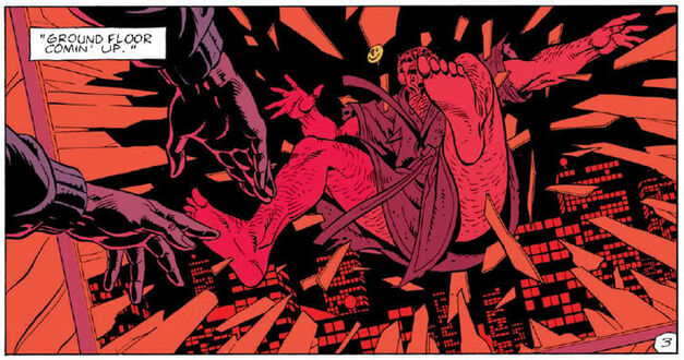 It's nonsensical because if Blake was transported somewhere else, what did everyone in the Watchmen universe see? They found his window smashed and his blood-soaked iconic button on the pavement, but was there a body? Did literally everyone just assume that the Comedian hit the ground and died so hard he exploded into a puddle of blood?
